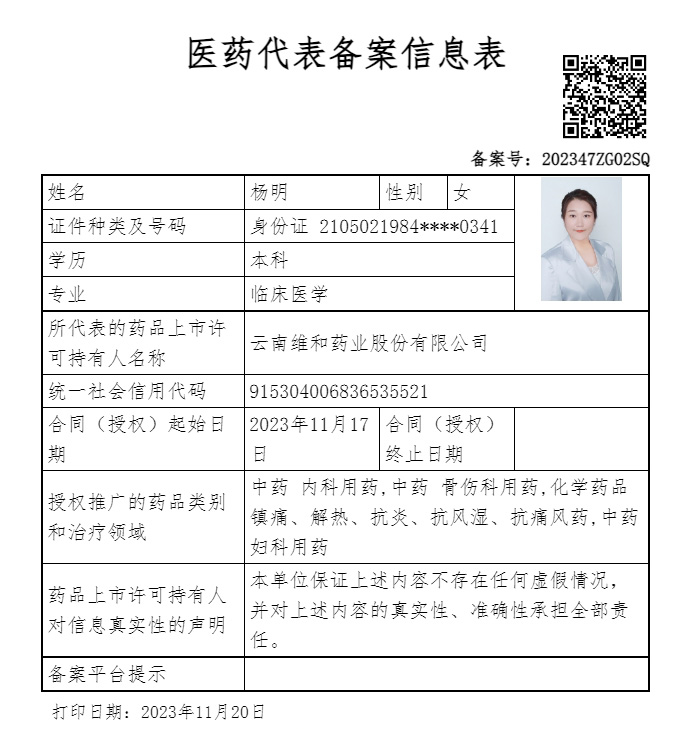醫(yī)藥代表信息備案表